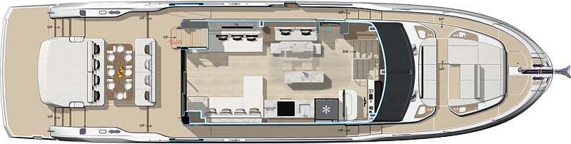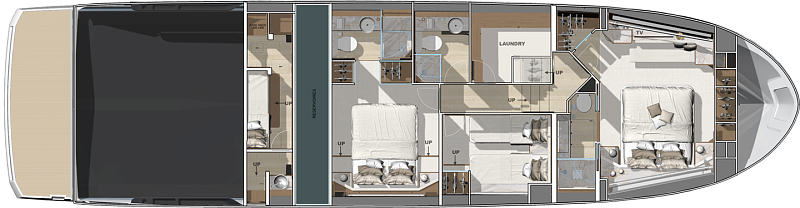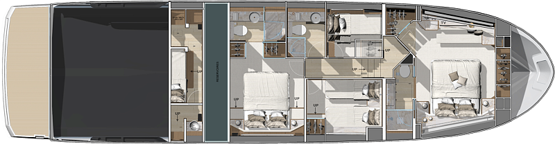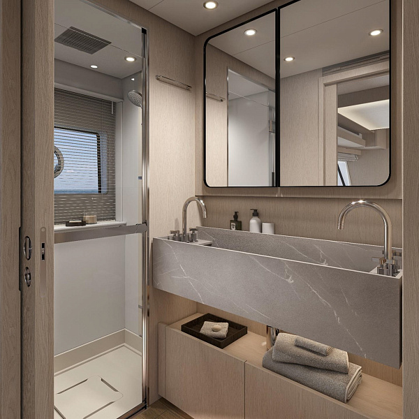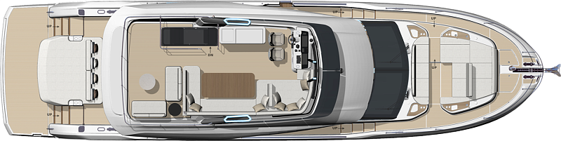 F6.7 предлагает гибкие планировки с тремя вариантами кают, просторные зоны отдыха, включая флайбридж 26 м², и продуманную архитектуру, ориентированную на комфорт владельца и его гостей.