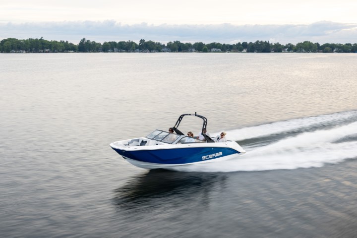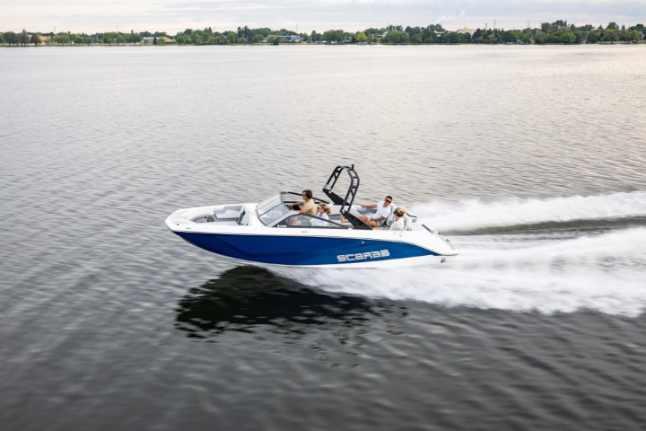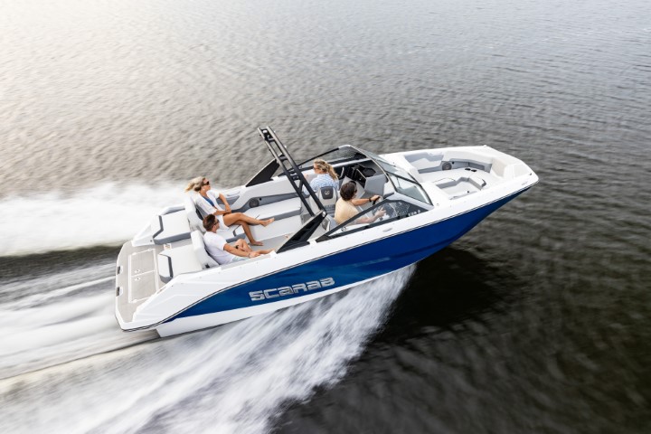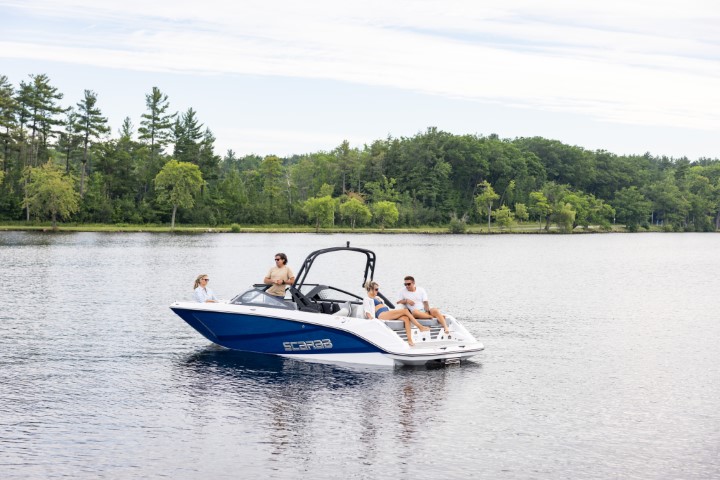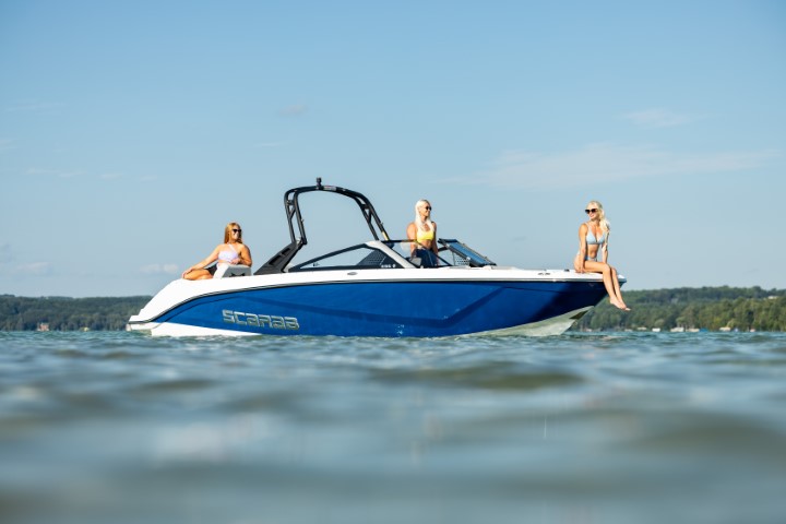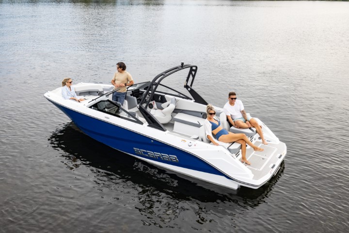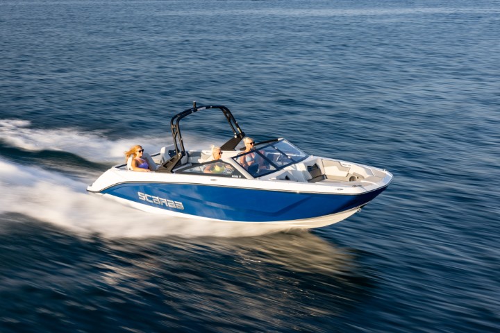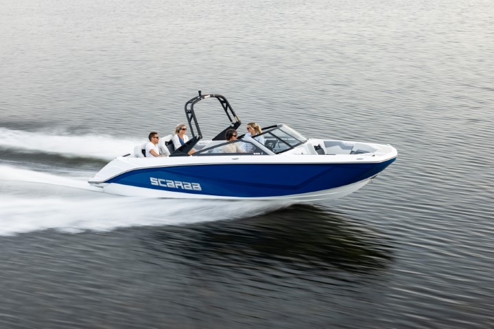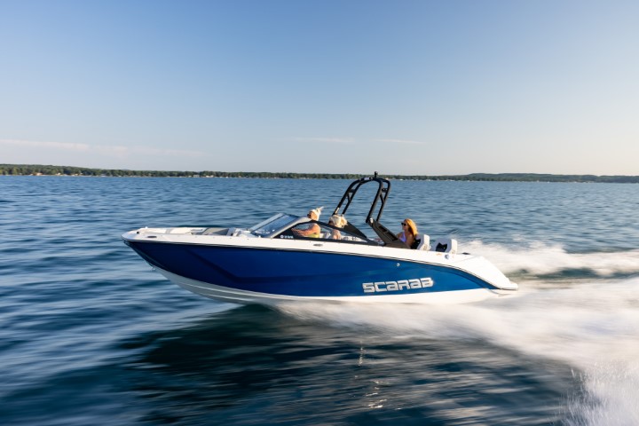 Scarab 235 - водометный двухмоторный 23-футовый катер. Он на 50 см длиннее Scarab 215, тяжелее и вмещает больше гостей. При этом катер остается в автогабарите.