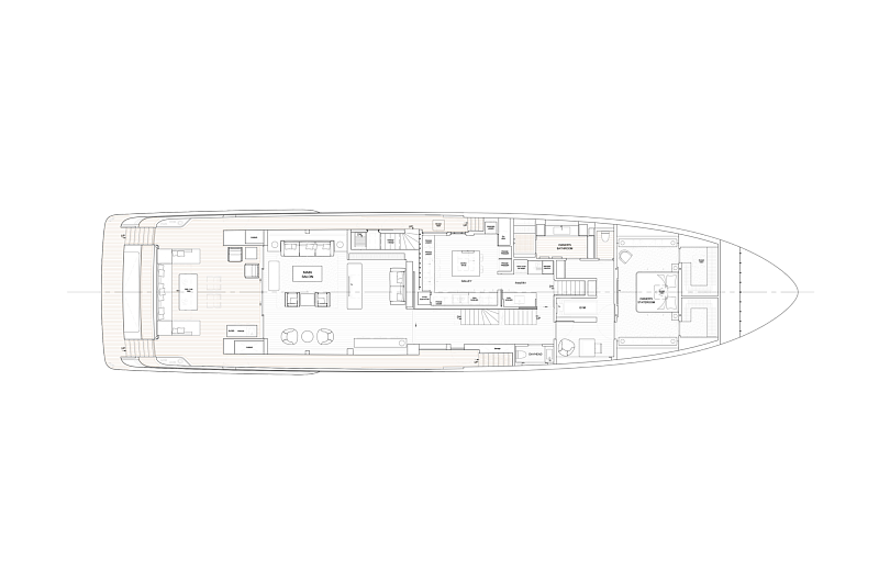 1 каюта владельца, 2 VIP-каюты для гостей, 2 двухместные каюты для гостей