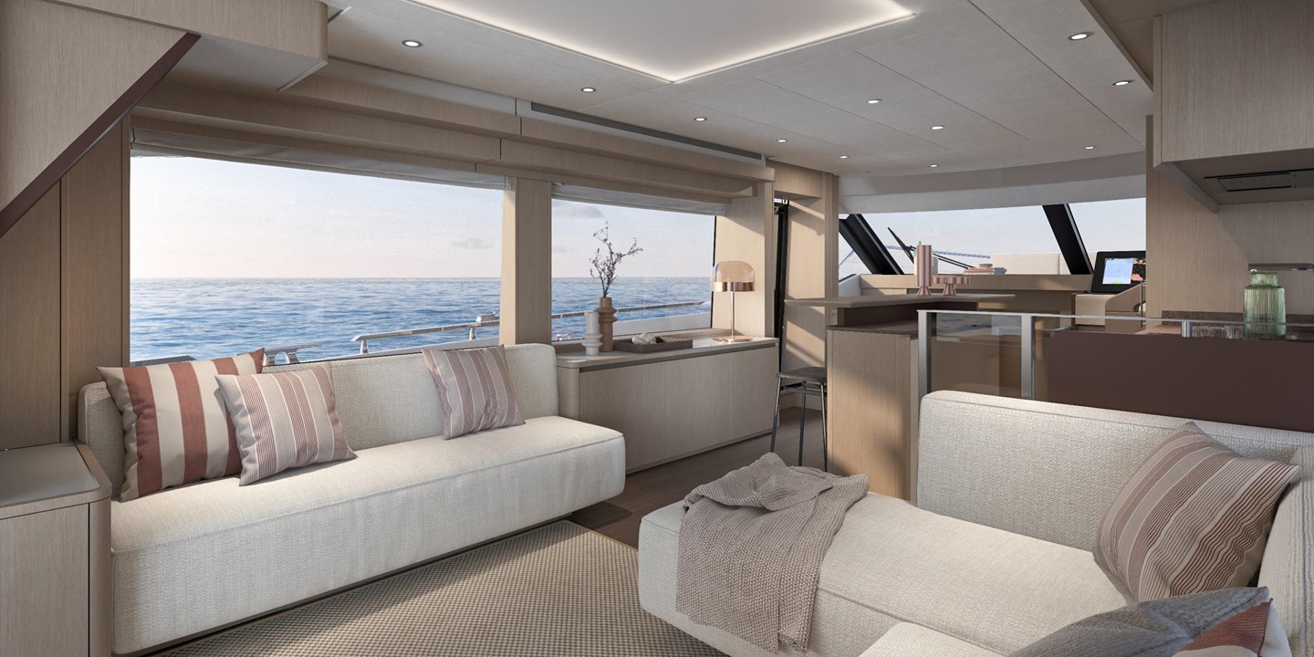 Концепция модели строится вокруг качества жизни на борту. Общая площадь жилого пространства достигает 170 квадратных метров, а три варианта планировок кают позволяют адаптировать яхту под индивидуальные сценарии использования.