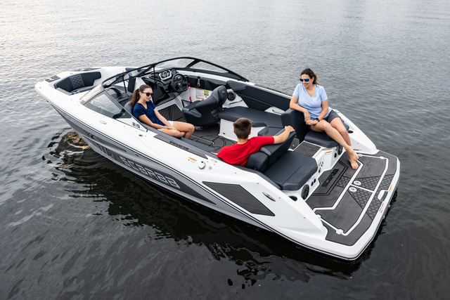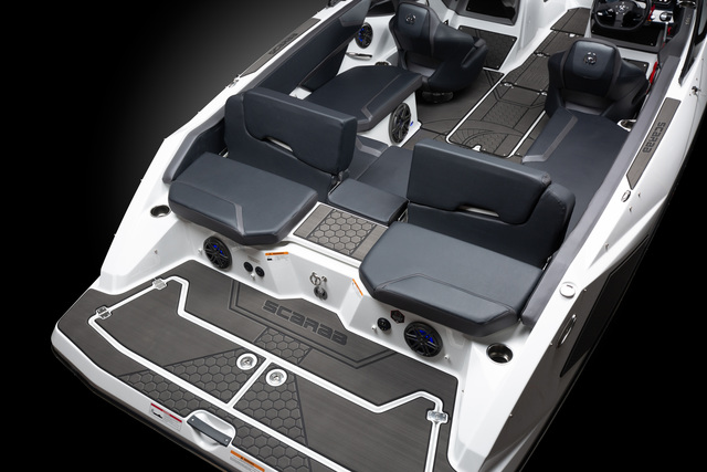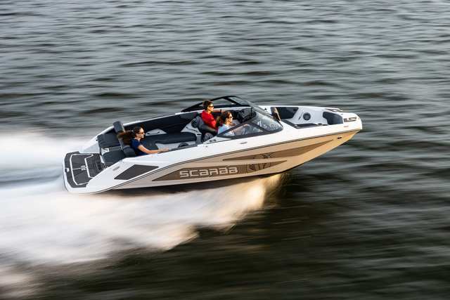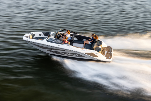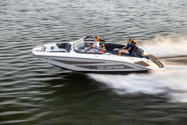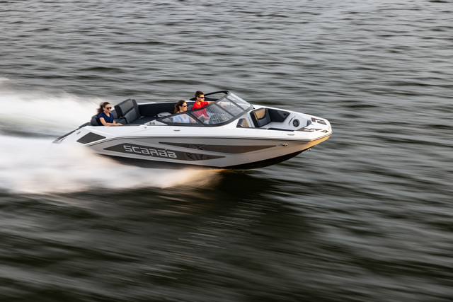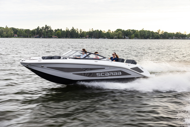 Scarab 215 легко создает волну для вейка и отлично подойдет для активного отдыха на воде.