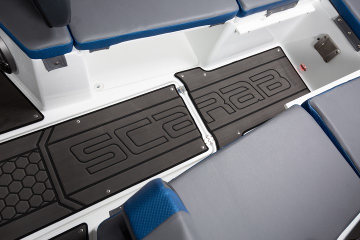 Scarab 255-водометный двухмоторный 25-футовый катер. Центральная консоль позволяет свободно перемещаться по катеру. Концепция Walk Around - идеальная для рыбалки, а также вмещает больше пассажиров.