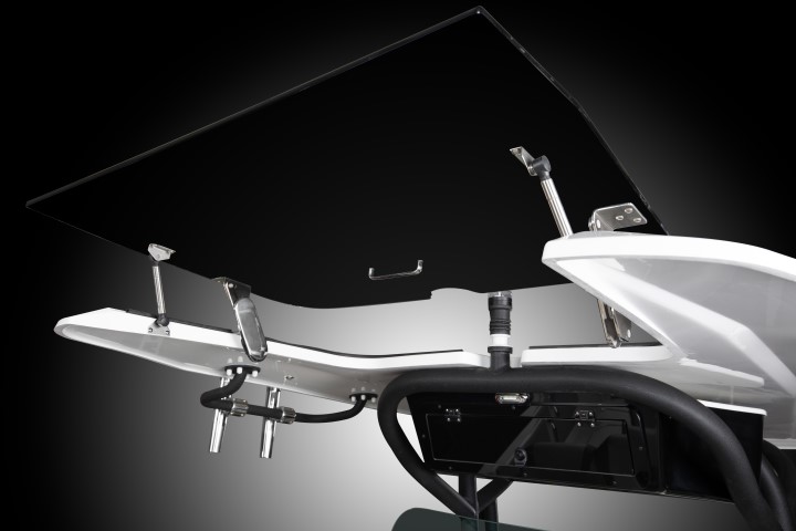 Хардтоп с люком и высокое ветровое стекло отлично защищают от солнца и ветра.