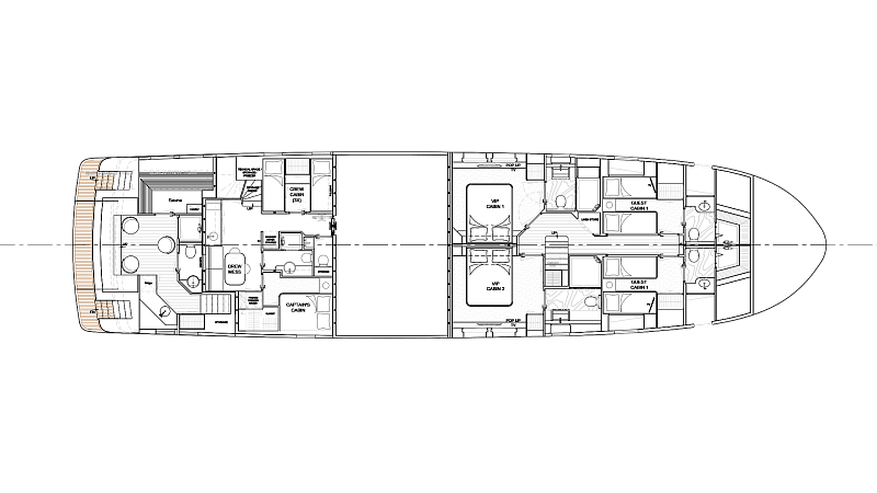 1 владелец, 2 VIP-гостя, 2 гостя в двухместном номере Экипаж из 3/4 человек, 2 каюты