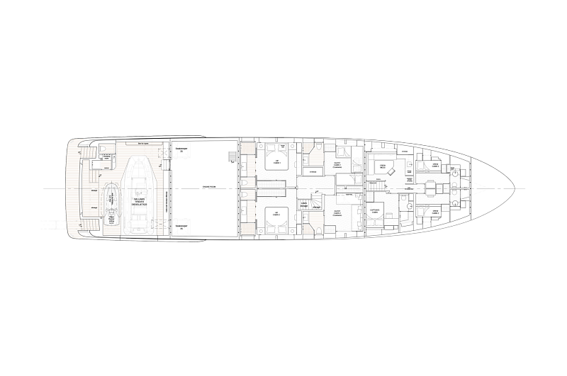 1 каюта владельца, 2 VIP-каюты для гостей, 2 двухместные каюты для гостей