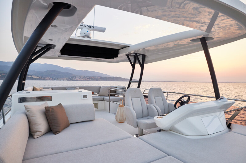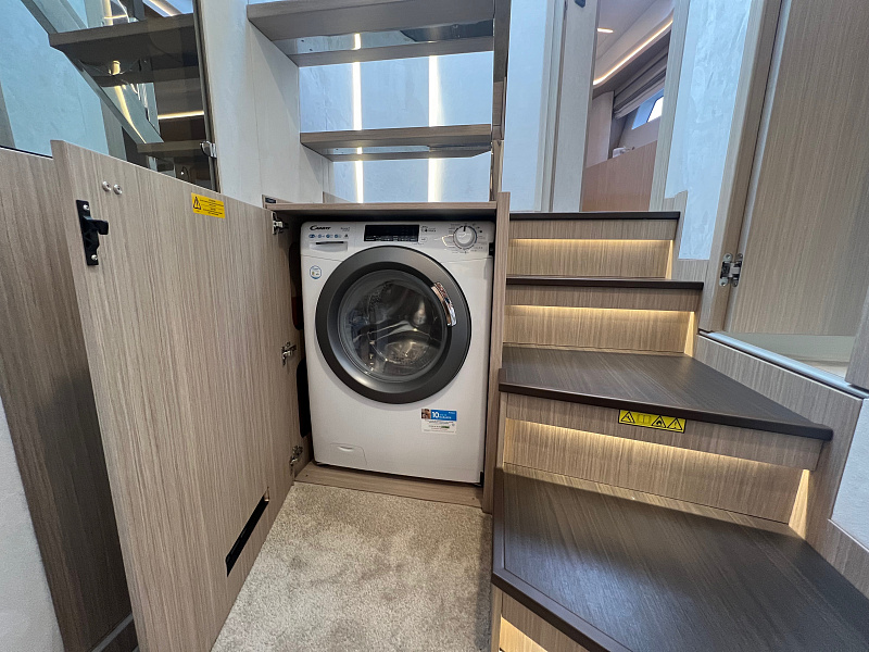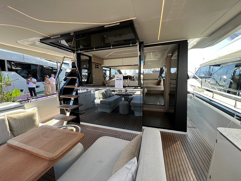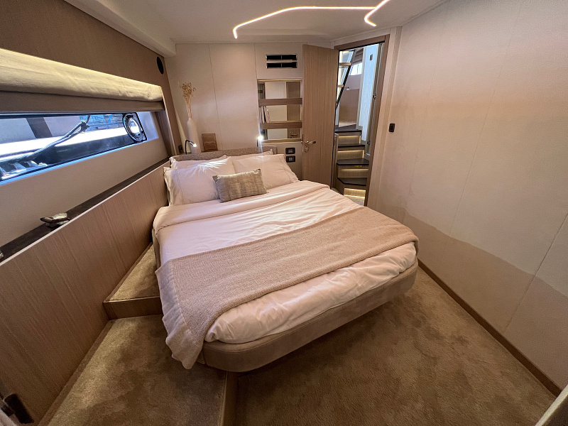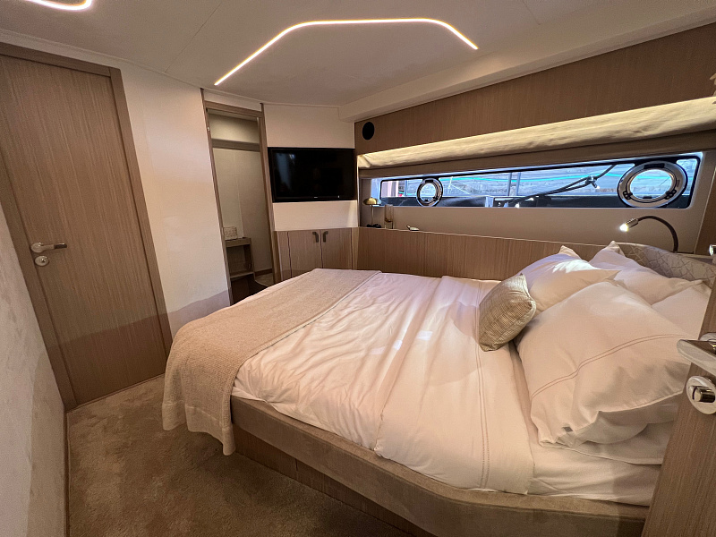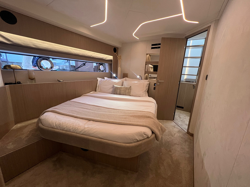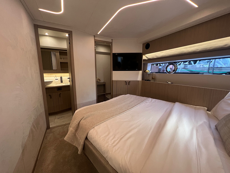3 приватные каюты с собственными туалетными комнатами, сдвижная бортовая дверь в салоне, кухонная зона с барным окном, гидравлическая платформа, широкая лестница на флайбридж - продолжать можно долго. Лучше увидеть своими глазами!