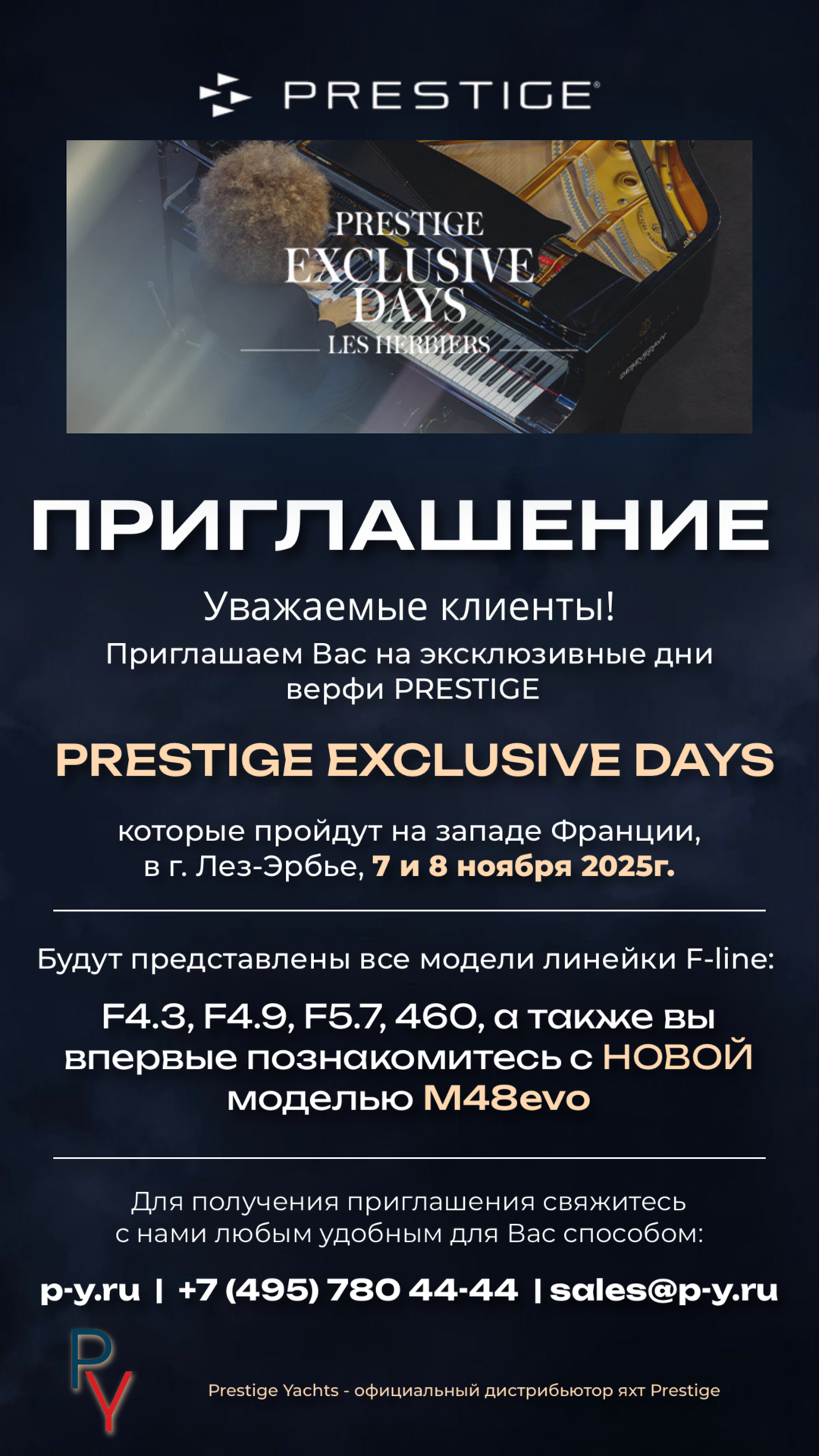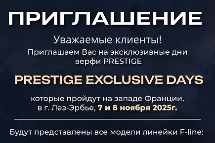 Приглашаем Вас на уникальное событие — эксклюзивные дни верфи PRESTIGE, которые пройдут 7 и 8 ноября 2025 года на западе Франции, в городе Лез-Эрбье.